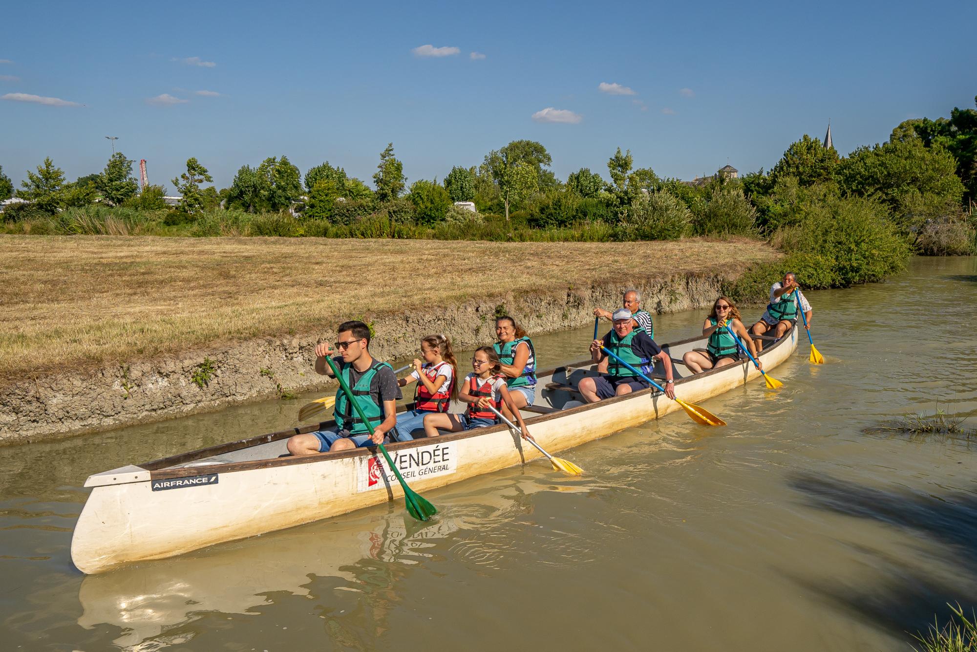 Après l’accueil du groupe par un guide de La Route du Sel, les enfants embarquent à bord d’un canobus, un grand canoë collectif pouvant accueillir jusqu’à 15 enfants, très stable et dirigé par le guide. La navigation, d’une durée d’environ 1h à 1h15, est ponctuée de petits jeux, d’observations et de temps d’échange autour du marais, de sa faune et de son environnement. L’approche est ludique et accessible, adaptée à l’âge des enfants.